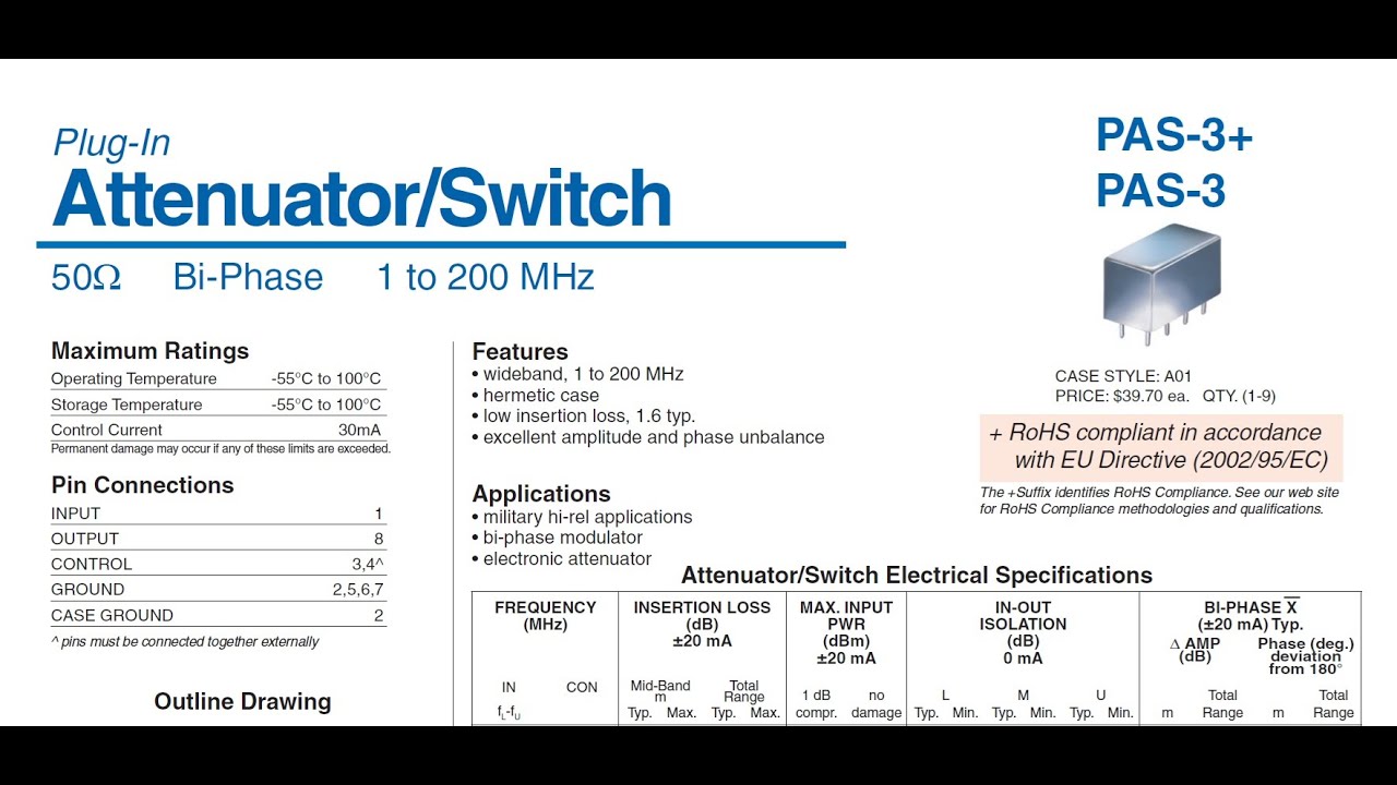 Data il range limitato di cui avevo bisogno ho scelto due PE4302 comandati a 3 step 0, 8, 16 e 31 dB di attenuazione.